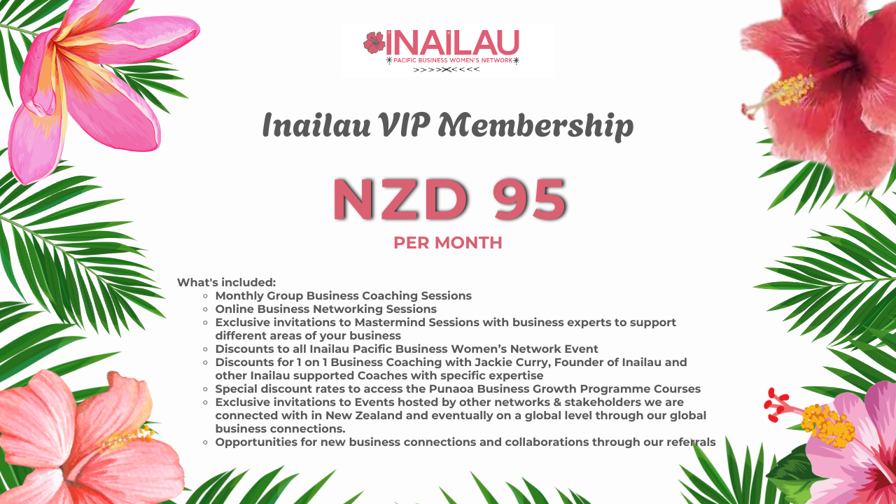 This membership rate is a special offer for our NZ-based Inailau sisters — supporting wāhine entrepreneurs here at home to grow, connect and thrive together.